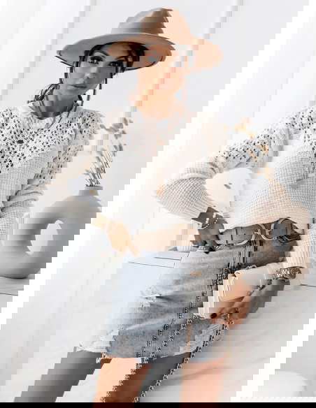 Biały sweterek z ozdobnym splotem Mariee skierowany jest dla kobiet ceniących sobie wyjątkowy look. Zdecyduj się na niego planując wyjście do pracy lub ulubionej kawiarni. Zestaw go z ulubionymi jeansami i zamszowymi botkami.