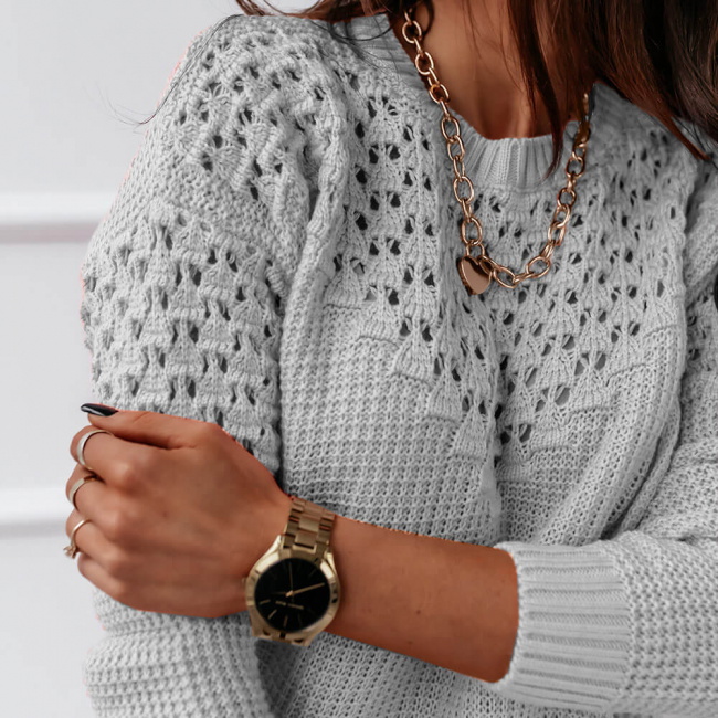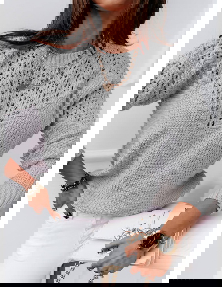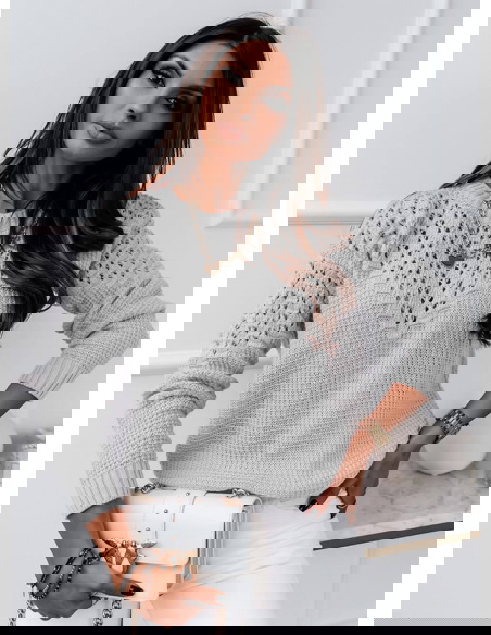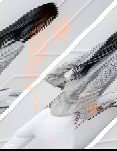 Popielaty sweterek z ozdobnym splotem Mariee polecamy każdej z Was. Tak uniwersalna część garderoby fantastycznie będzie się komponować w zestawieniu z materiałowymi spodniami jak i jeansową spódniczką. Dobierz do kompletu botki na koturnie oraz flauszowy płaszczyk. Efekt WOW gwarantowany.