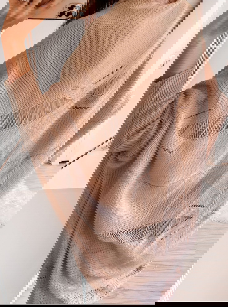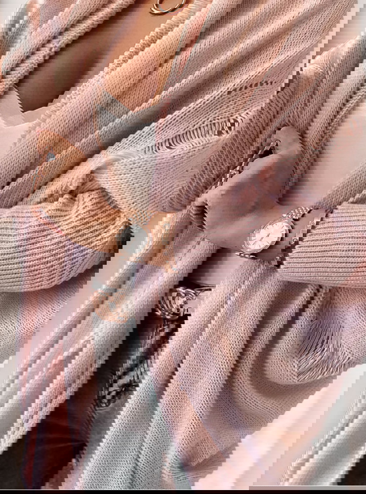 w wariancie pudrowy to idealny pomysł na uzupełnienie każdej. Jego dużym atutem jest to, że doskonale pasuje do jeansów, spódnicy (zarówno długiej jak i mini) czy legginsów. Możesz go nosić o każdej porze roku, zimą oraz latem, w chłodniejsze wieczory.