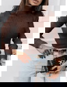 Sweterek prążkowany z golfem Aila - ecru  sweterek jest przyjemny w dotyku a co najważniejsze to nie gryzie dzięki czemu będziemy czuc nie komfortowo. Sweterek ten posiada golfik i jest dopasowany dzięki czemu podkreśli nasze atuty i będzie pasować niemal do wszystkiego.