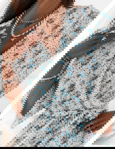 Przepiękny nowy wzór który się u nas pojawił na pewno skradnie wasze serca tak jak i inne printy kwiatowe. Drobne kwiatuszki sprawiają że sukienka nabiera delikatności i dziewczęcości.
