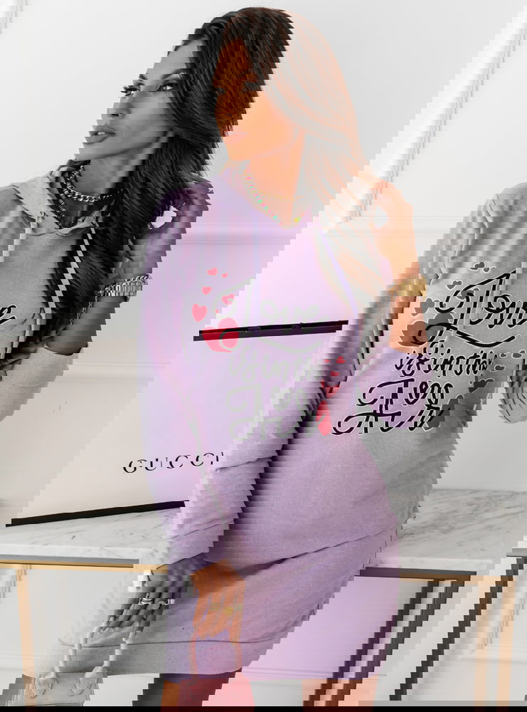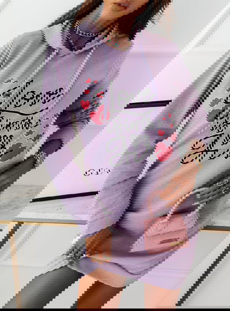Liliowa sportowa sukienka z napisami Rahel