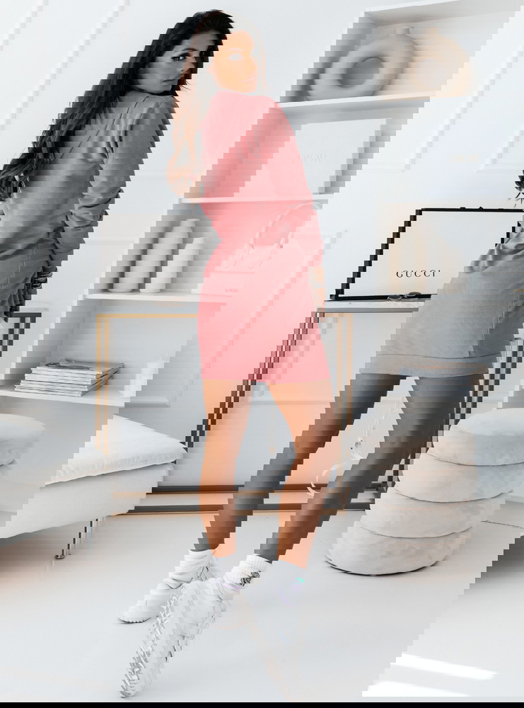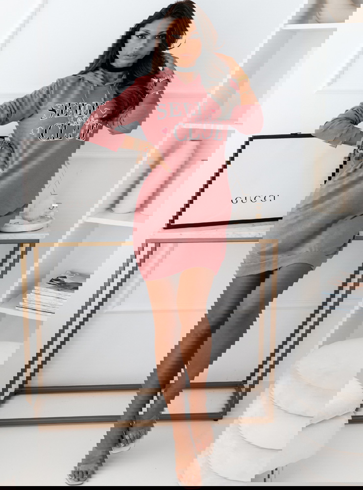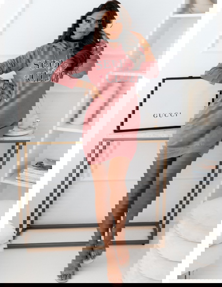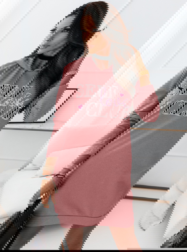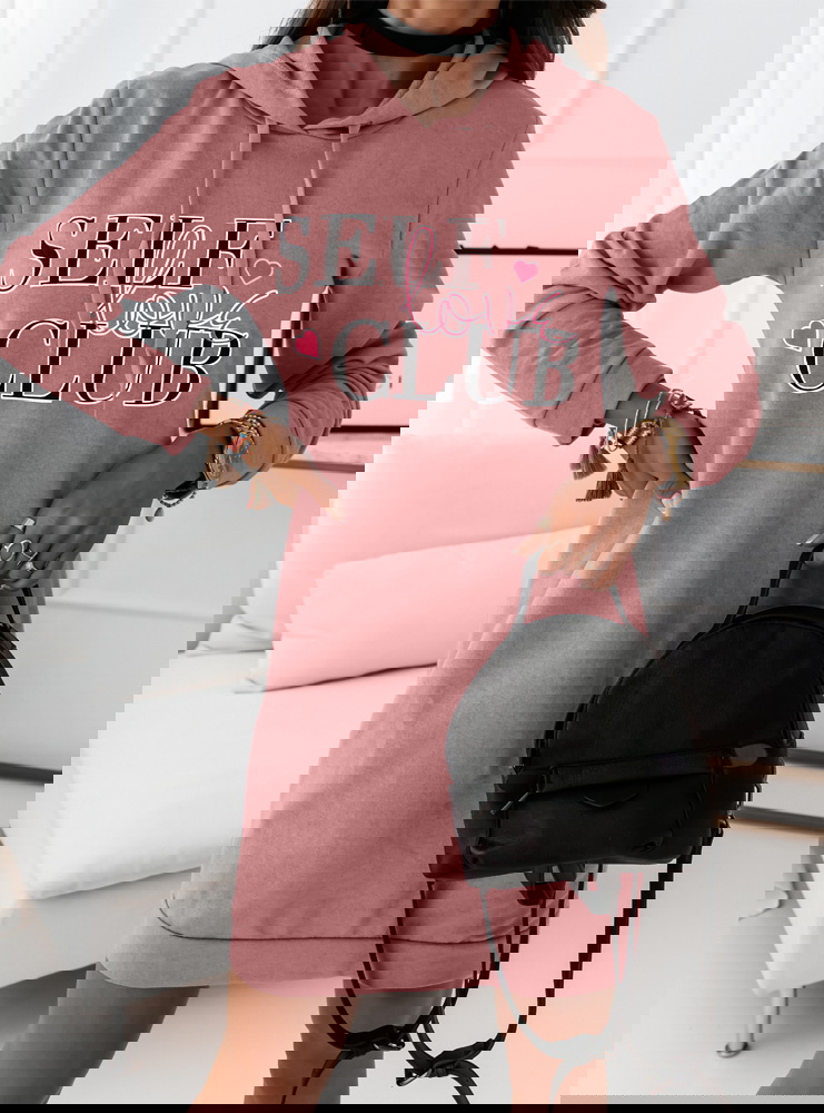 Sportowa sukienka z nadrukiem Lakely- brudny róż sukienka jest bardzo wygodna i idealnie sprawdzi się na codzienne spacery. Jeśli lubisz sukienki ale chcesz wskoczyć w dresowy look to będzie świetna alternatywa dla ciebie.