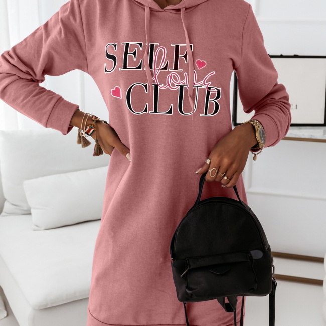 Sportowa dresowa sukienka z nadrukiem Lakely - brudny róż