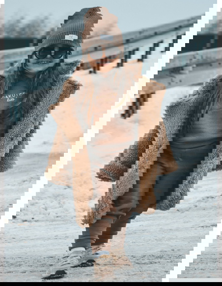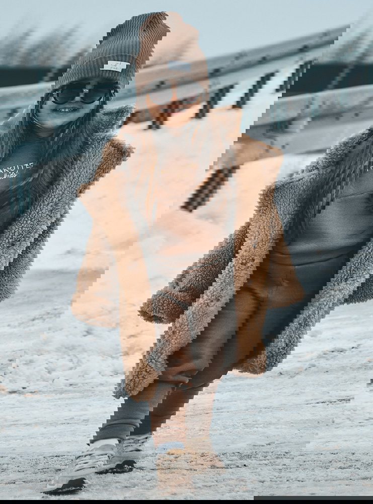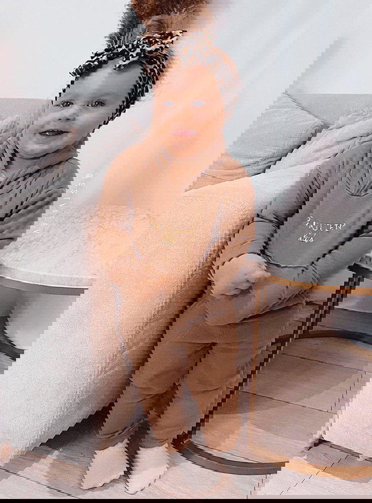 Beżowa ocieplana dziecięca bluza dresowa Olii -