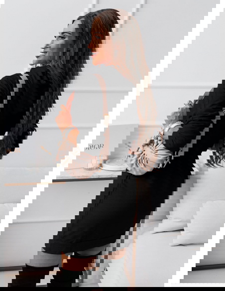 Czarna sportowa sukienka z nadrukiem Eloisee idealna alternatywa sukienka na co dzień. Lubisz sukienki a jednocześnie chcesz czuć się komfortowo.