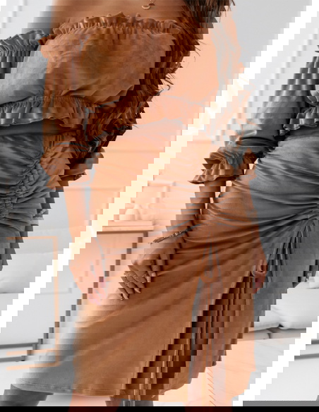 Karmelowy welurowy komplet spódniczki z rozcięciem i hiszpanką Venetta