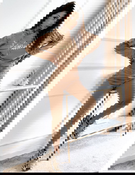 Beżowy komplet dresowy ze złotym nadrukiem Ewelke