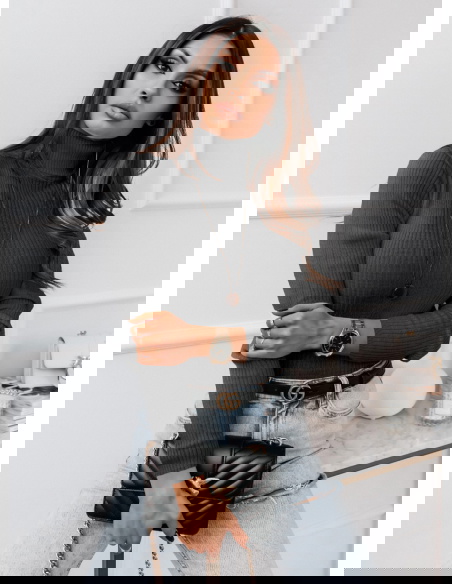 Grafitowy sweter prążkowany z golfem Aila Genialnie się prezentuje a jego stonowany kolor, będzie pasował do większości twojej garderoby aby coś dopasować.