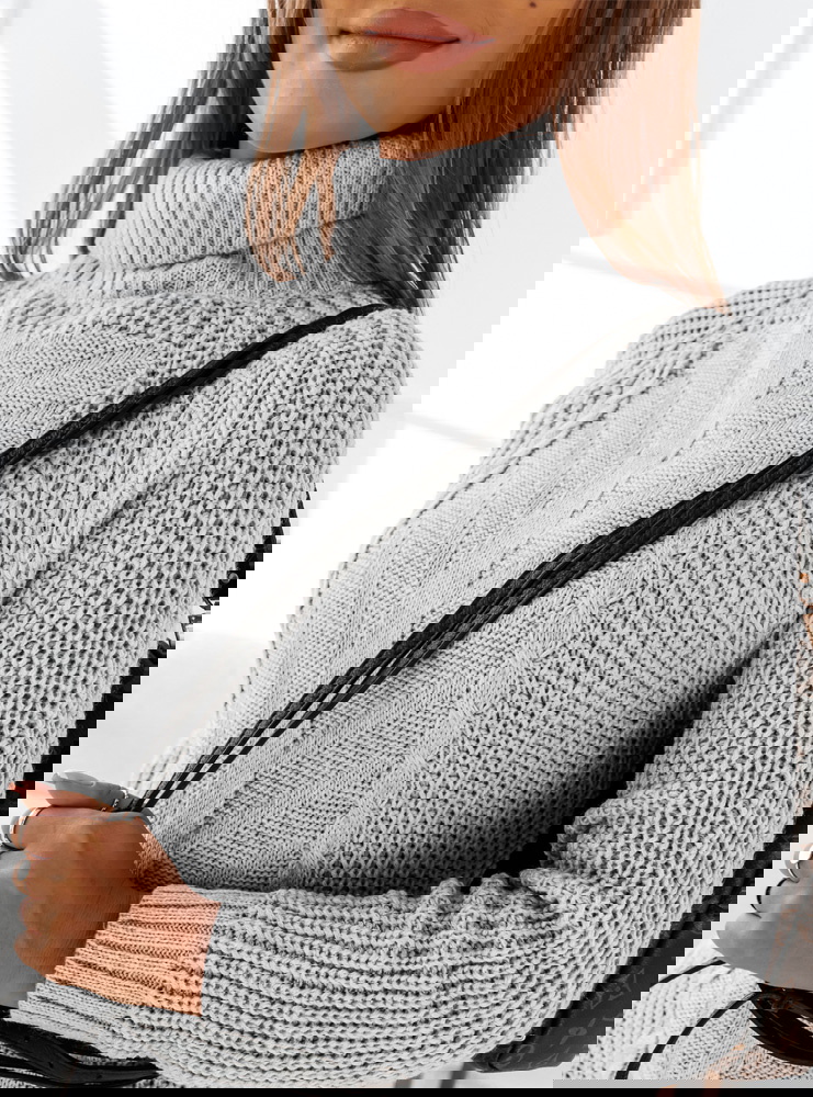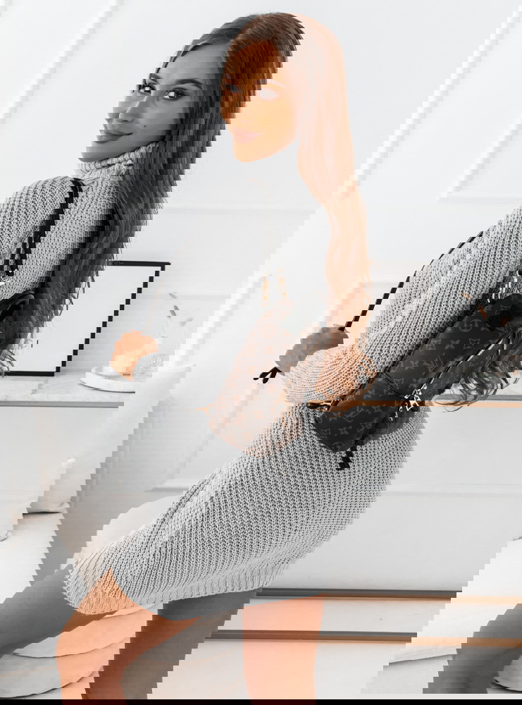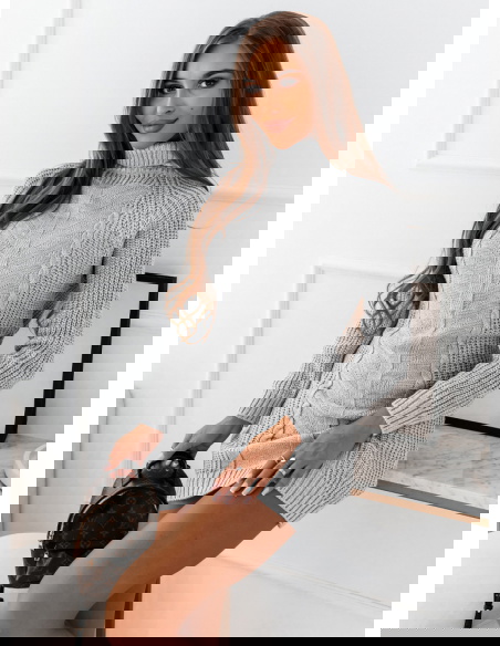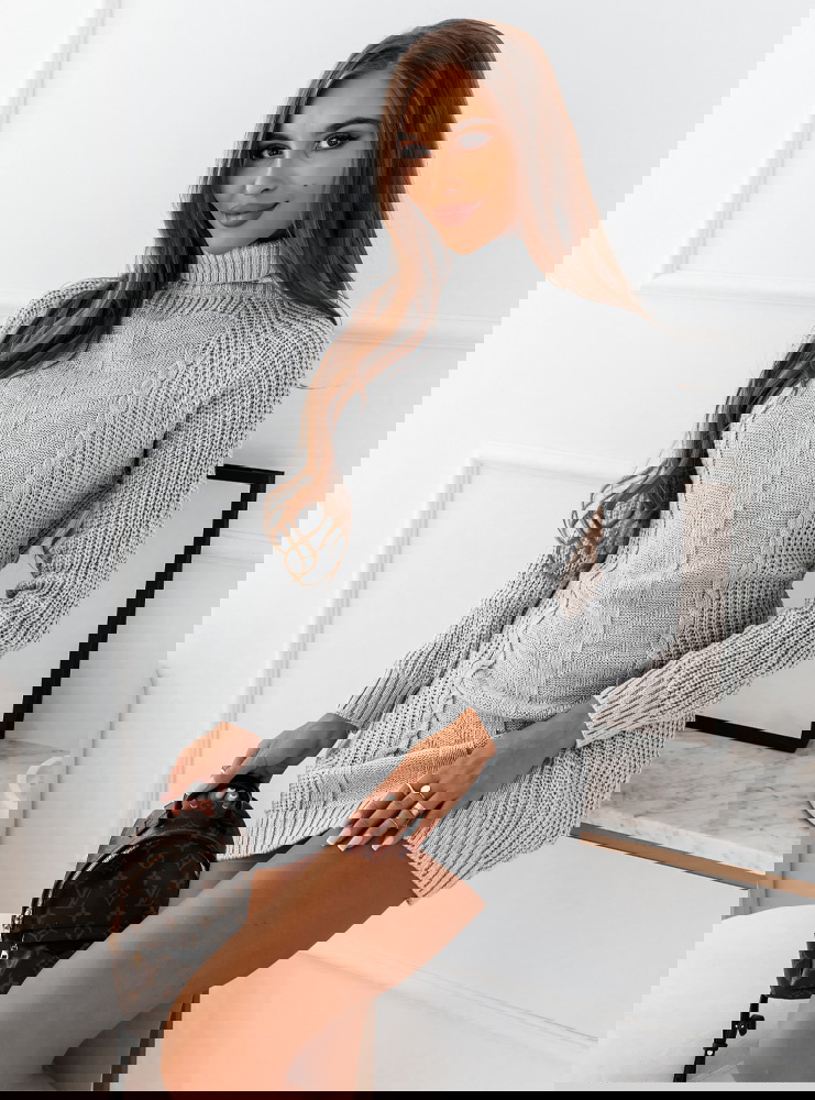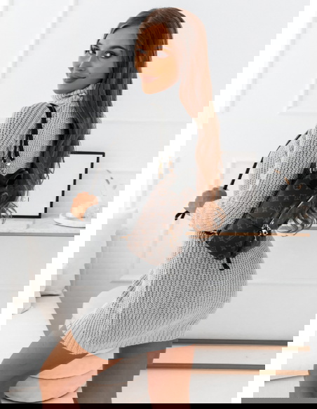 Szara sweterkowa sukienka z golfem Narlene jest dopasowana i super podkreśla twoje walory sylwetkowe. Sweterkowy materiał idealnie uchroni Cię przed zimnem.