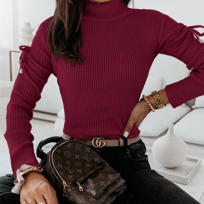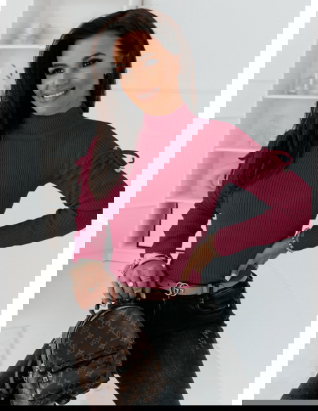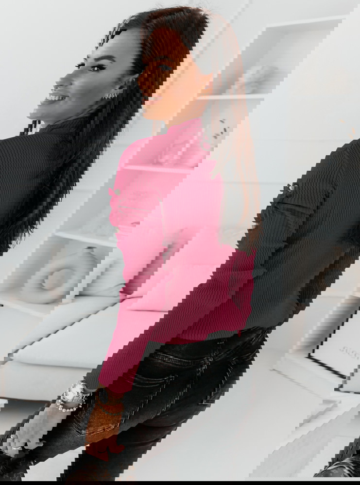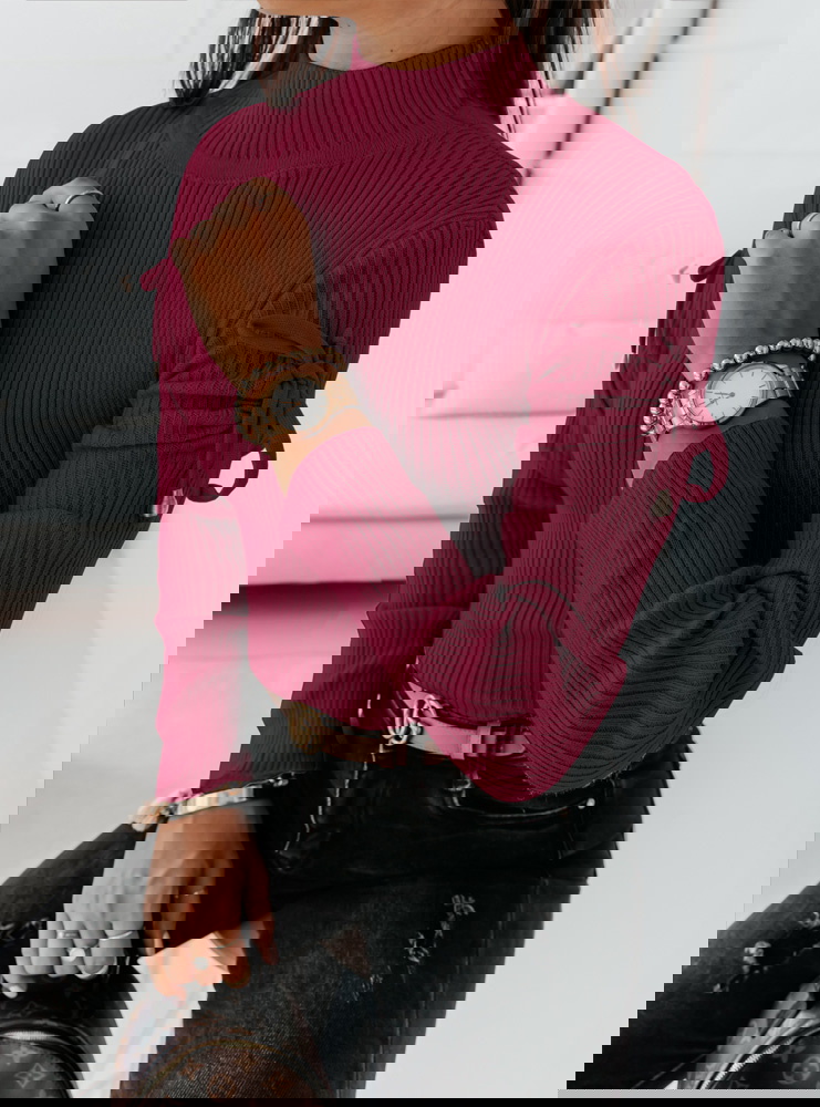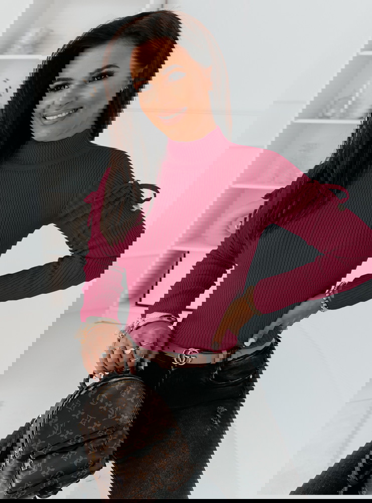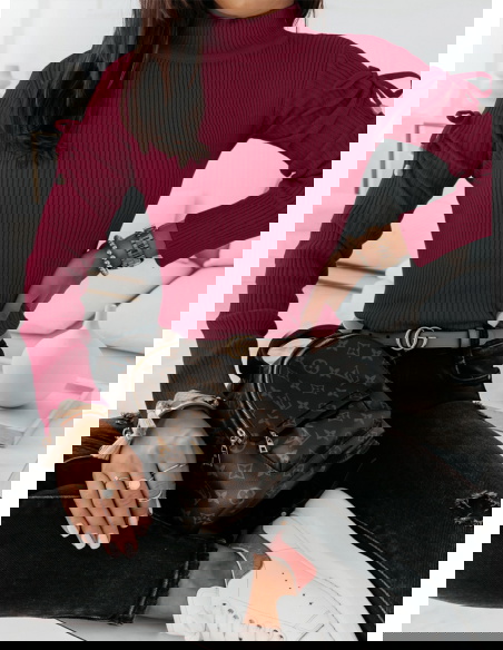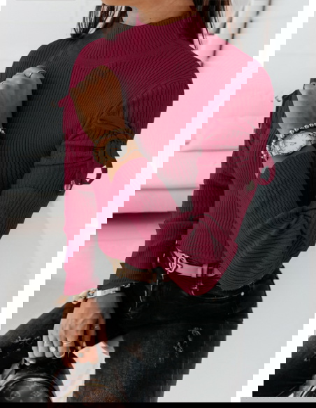 Sweter ze stójką i ozdobnymi rękawami Keilani- fuksja sweterek jest z prążkowanego materiału dzięki czemu świetnie dopasuje się do twojej sylwetki, a na rękawkach posiada ozdobne wiązanie.