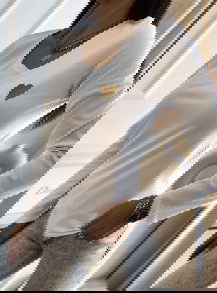 Biała bluzka na długi rękaw z nadrukiem Corine