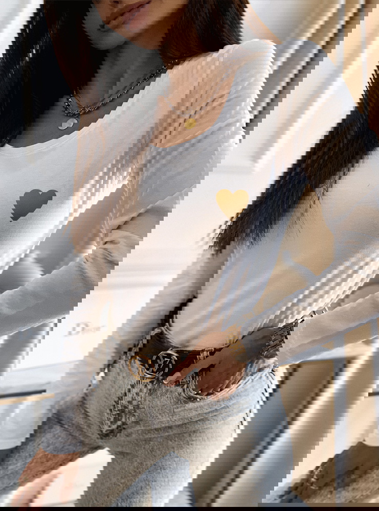 Biała bluzka na długi rękaw z nadrukiem Corine taka bluzka powinna znalezc się w twojej szafie, stworzy z nią wiele stylizacji ciekawych i świetnie sprawdzi się pod kardigan.