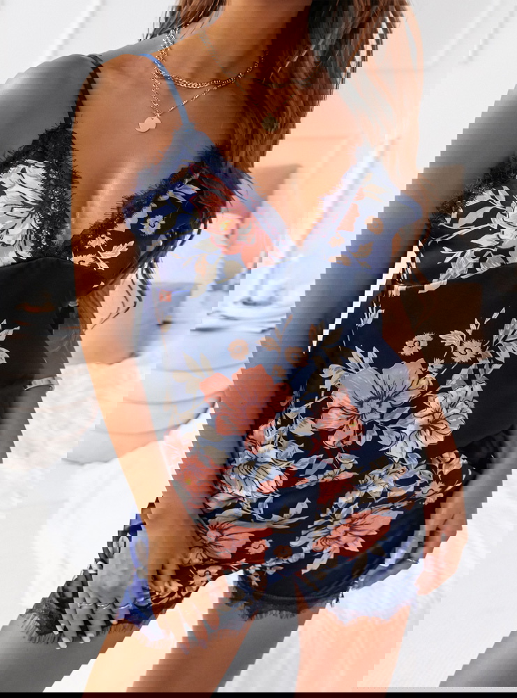 Piżamka posiada koronkę i krótkie szorty. Cały zestaw wykonany jest z najbardziej eleganckiego materiału jakim jest satyna. Zestaw jest bardzo wygodny.