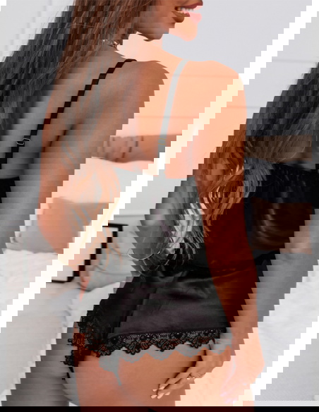 Czarna satynowa logowana piżama koszulka + szorty Majaa