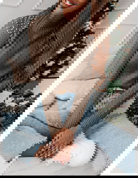 Sweterek z perełkami Doniaa - odcienie brązu będzie idealna baza do wielu jesiennych stylizacji. Sweterek jest cieplutki i bardzo mięciutki i nie krepuje ruchów.