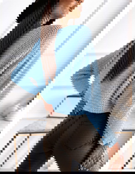 Delikatny sweterek który świetnie sprawdzi się do codziennych stylizacji. Uzupełni twoje stylizacje, jesienią i wiosną dzieki delikatnemu splotowi.