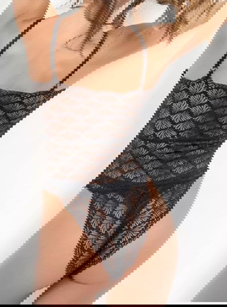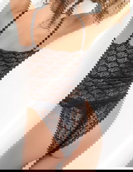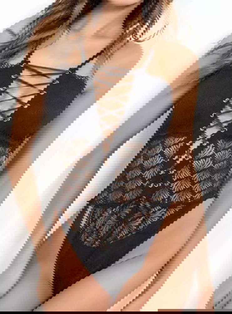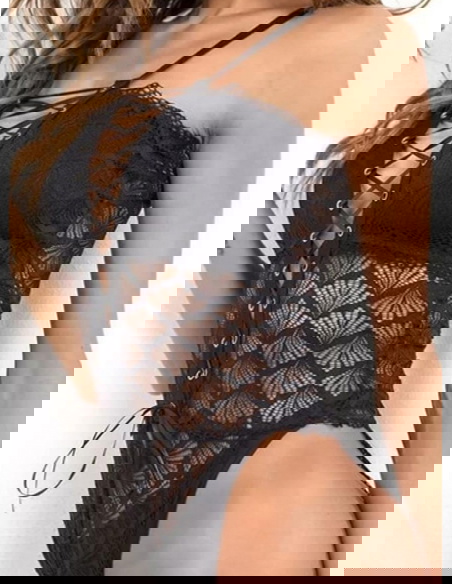 Czarne koronkowe body z ozdobnym sznurowaniem Billo jeżeli lubisz eksponować swoją nagość to prezentujemy Ci nasze piękne body Billo, które dodadzą Ci drapieżności i seksapilu.Wykonane zostało z przyjemnej w dotyku miękkiej siateczki o dużych oczkach. Elastyczny materiał doskonale dopasuje się do Twoich krągłości.