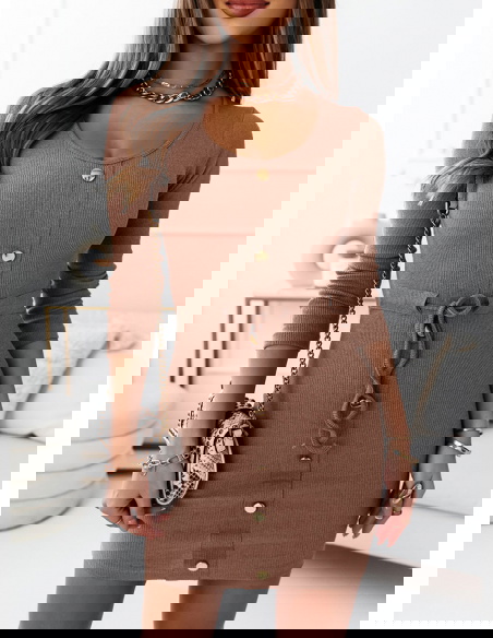 Dopasowana prążkowana sukienka z ozdobnymi guzikami Krishelle- odcienie brązu