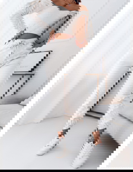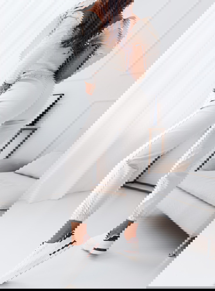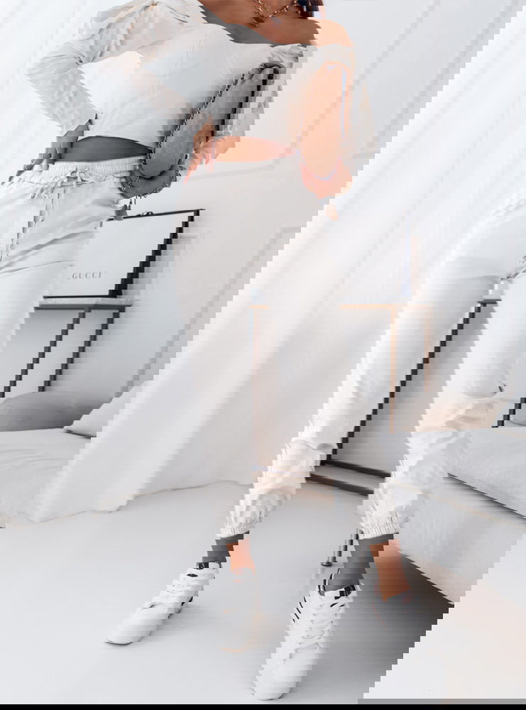 Białe spodnie ze ściągaczami Mikaia spodnie te są bardzo wygodne i komfortowe idealnie sprawdza się na każdy dzień.