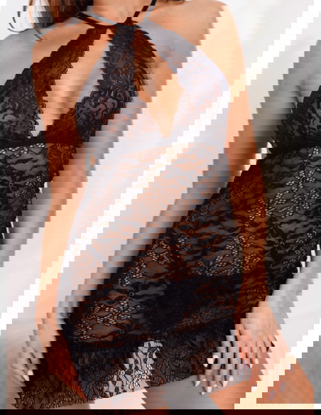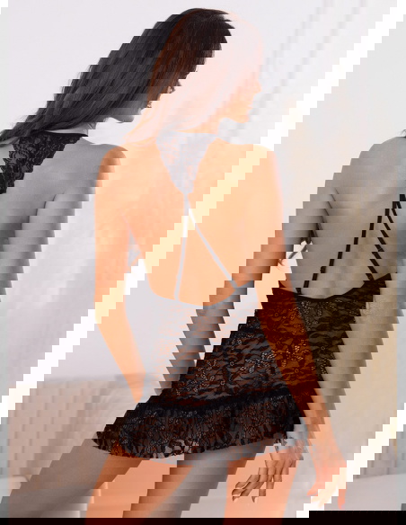 Czarny koronkowy zestaw bielizny koszulka+stringi Ezza