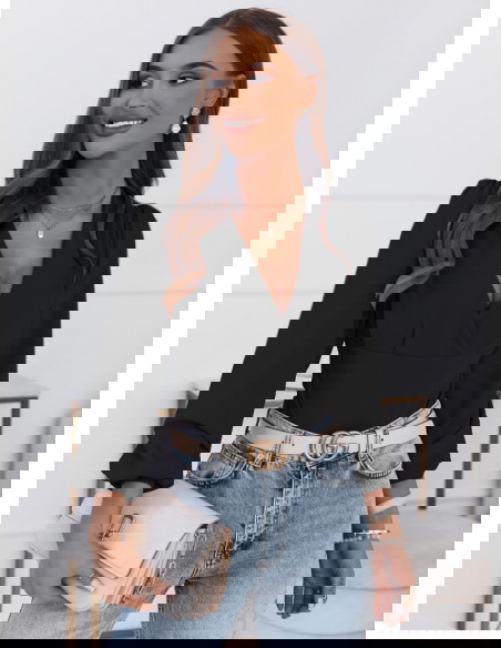 Czarne body z przekładanym dekoltem Korra