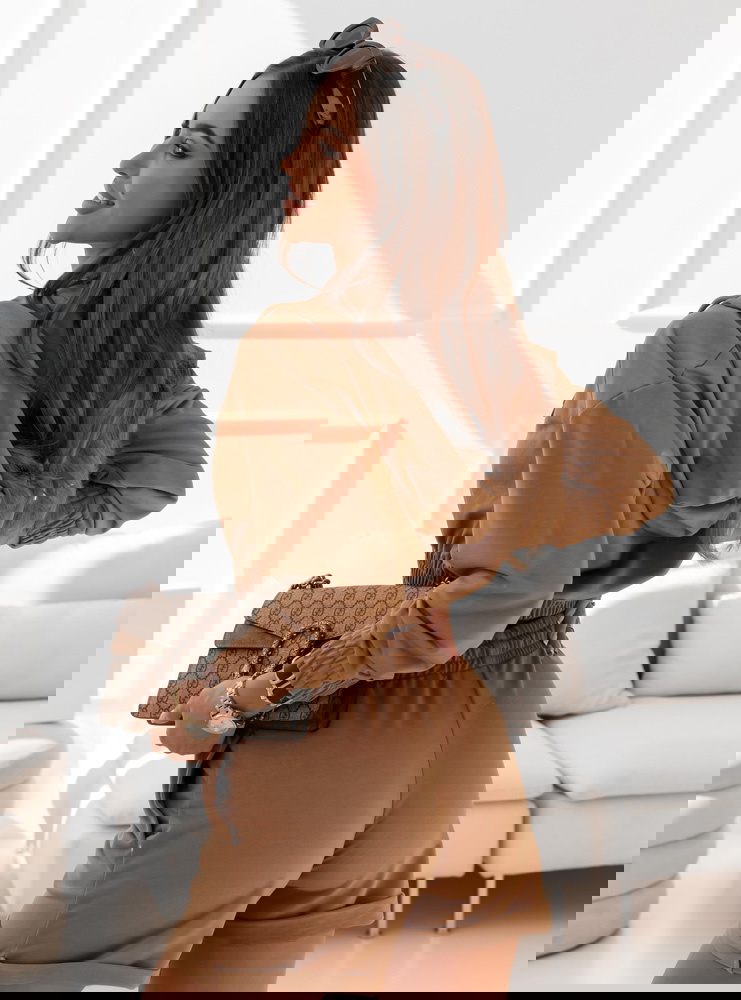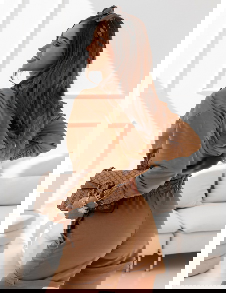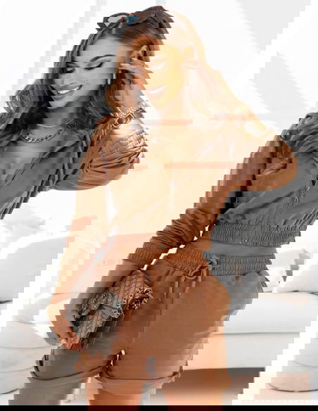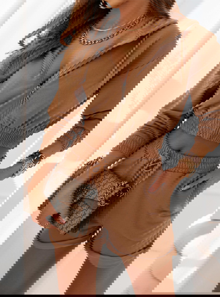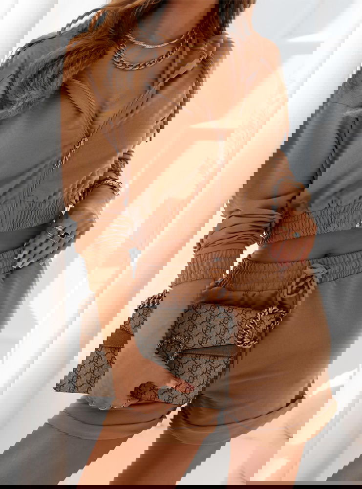 Karmelowy komplet dresowy bluza + szorty Kertto - odpowiednik sportowych stylizacji , dostępny w wielu kolorach aby każda z nas znalazła coś dla siebie.