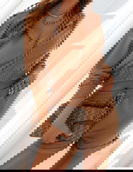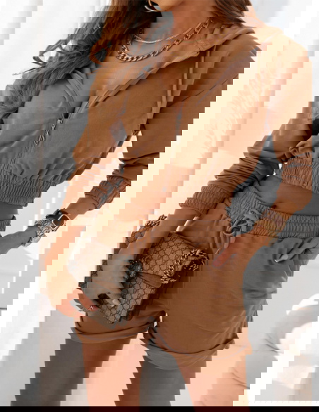 Karmelowy komplet dresowy bluza + szorty Kertto