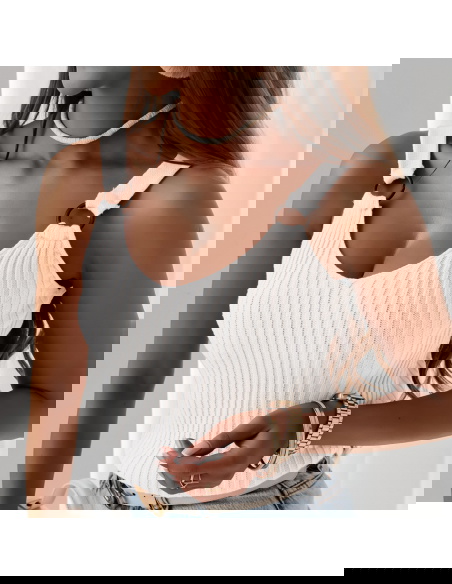 Sweterkowa bluzka na ramiączkach Jaclyn - ecru