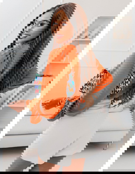 Bluzka w letnim kolorze. Pomarańczowy kolor będzie się idealnie prezentował z białymi szortami lub spódniczką. Taka koszula nada się na wiele okazji na wyjście na miasto, do pracy czy nawet randkę.
