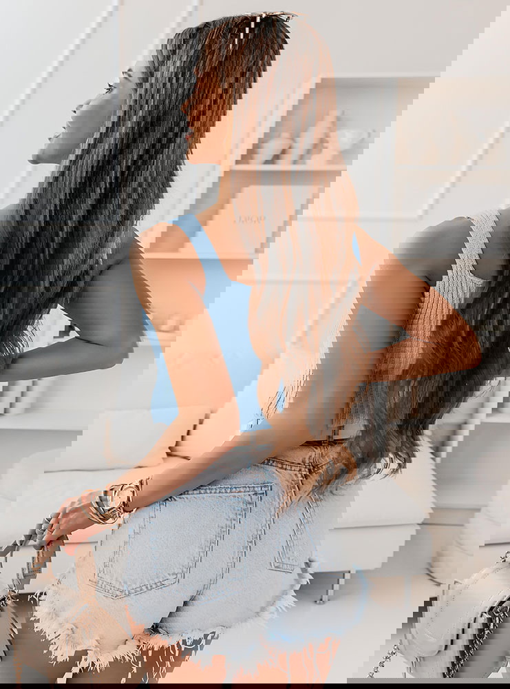 Błękitna sweterkowa bluzka na ramiączkach Letinaa dopasuje się do większości twojej garderoby dolnej, możesz tworzyć z ta bluzeczką naprawdę fajne stylizację.