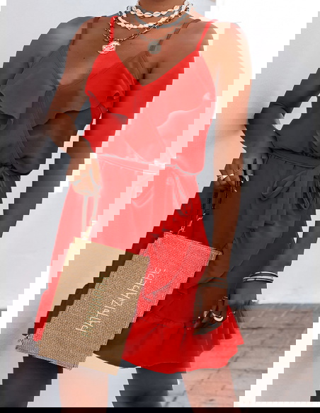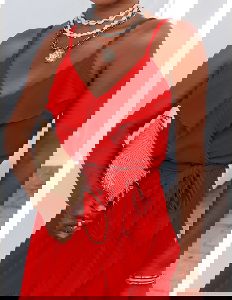 Sukienka idealnie sprawdzi się niespodziewane wyjścia, jak imprezy okolicznościowe. Przedkładany dekolt i zakończenie z falbanek podkreślą kobiece atuty.