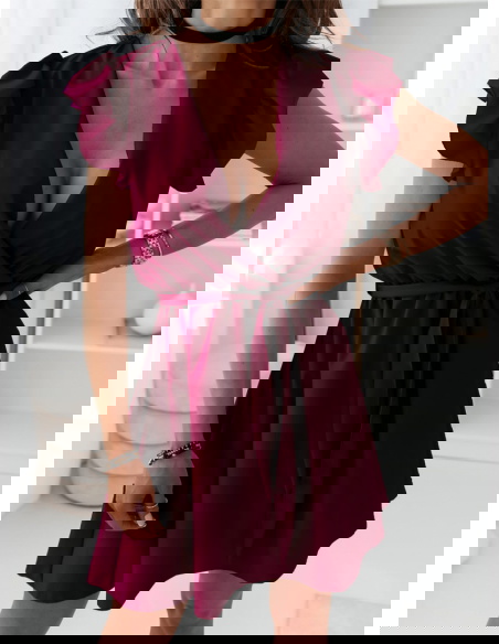 Bordowa sukienka z przekładanym dekoltem Letinna