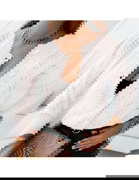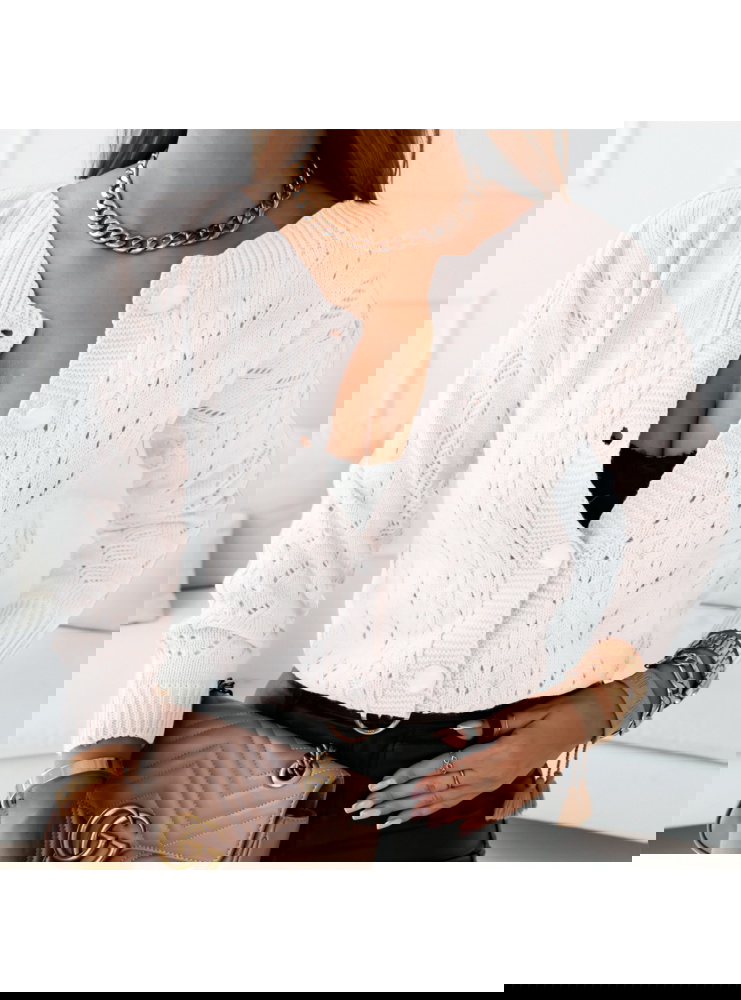 Ażurkowy sweterek zapinany na guziki Allonna - ecru