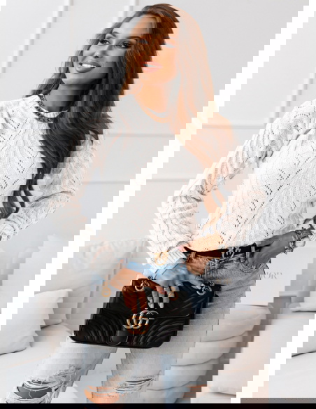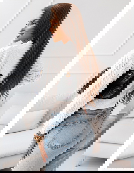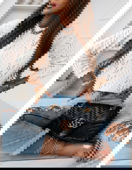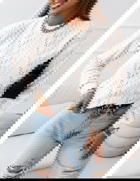 Sweterek z ażurowym splotem Amaliya - ecru W połączeniu z jeansami stworzysz super stylizację.