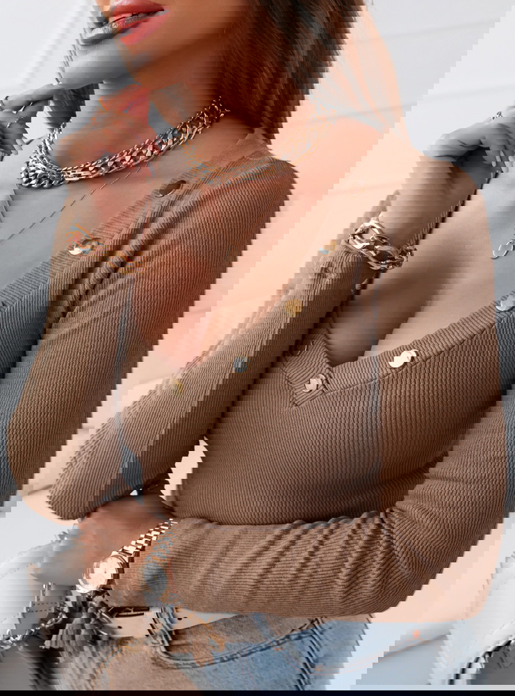 Bluzka prążkowana z ozdobnymi guzikami Berra - odcienie brązu Będzie pięknie wyglądała pod skórzaną kurteczką.