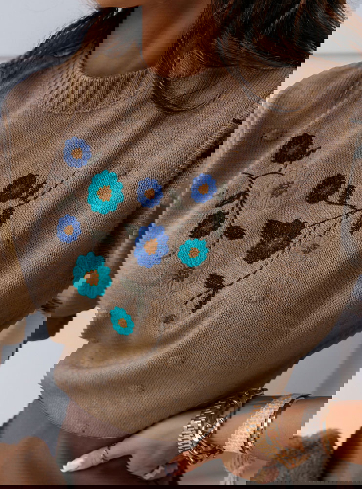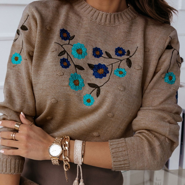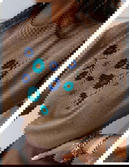 Sweter z ozdobnym haftowaniem Azelie - odcienie brązu