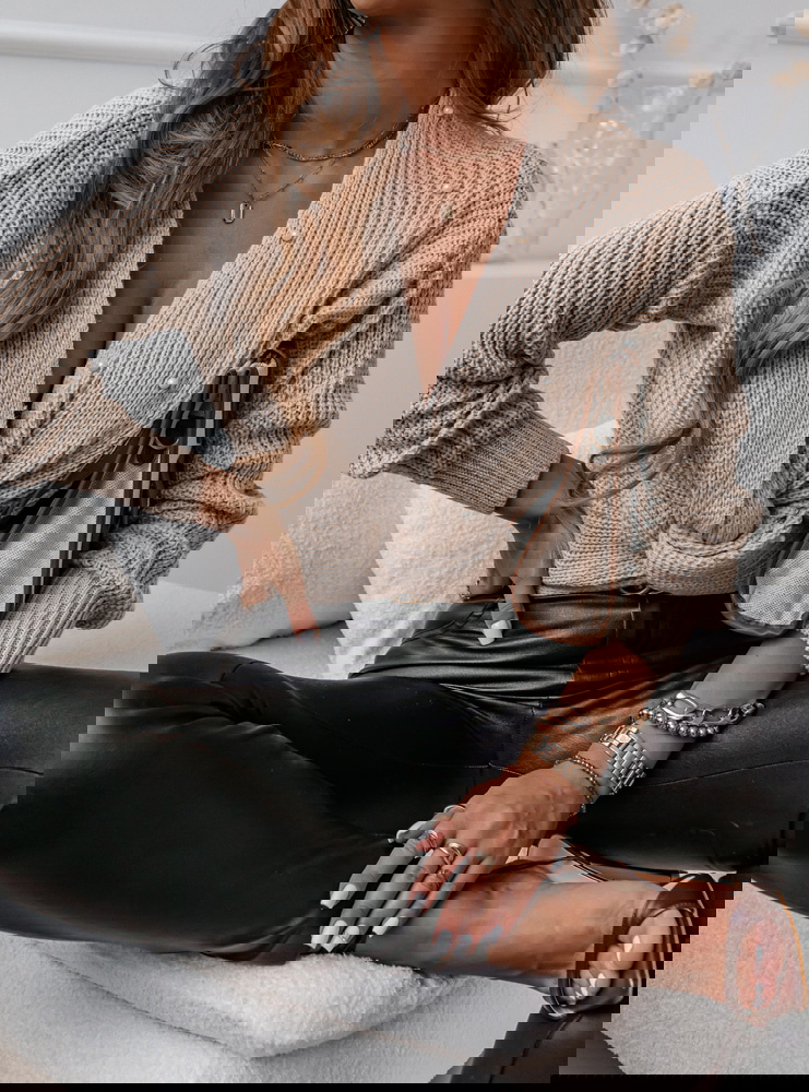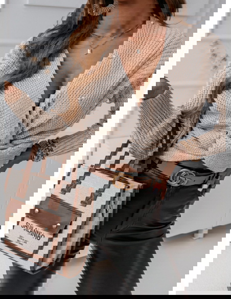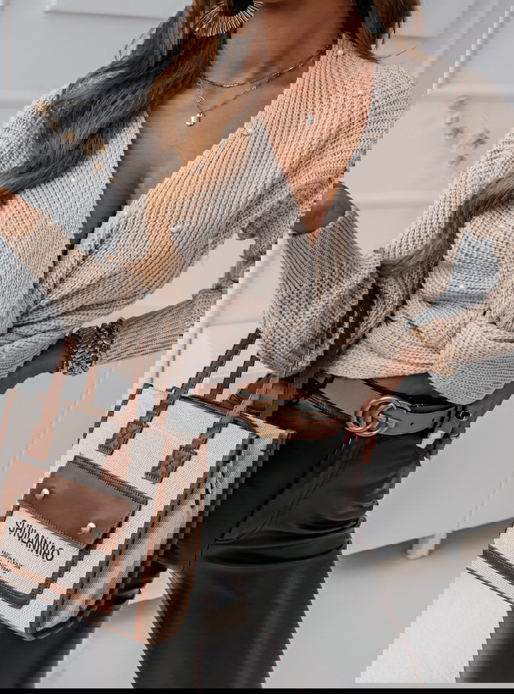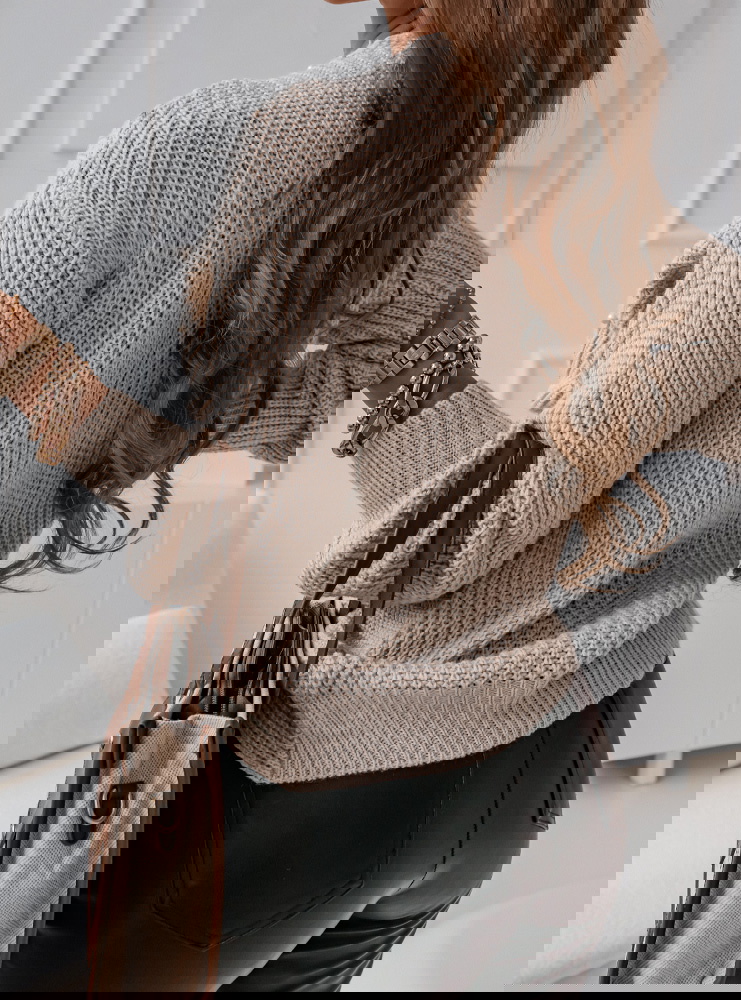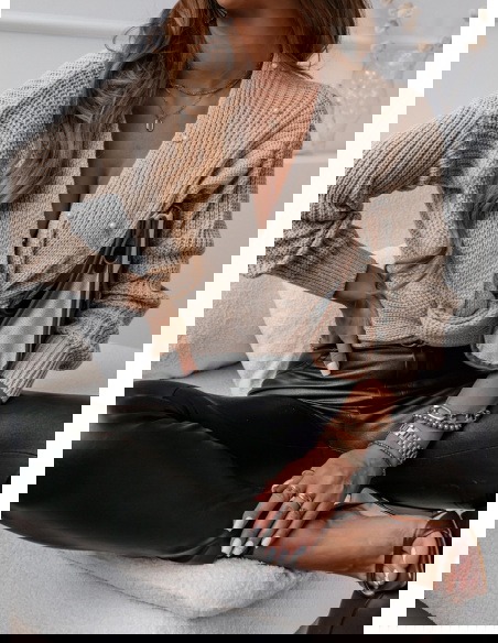Beżowy sweter z perełkami i przeplotem Rossie
