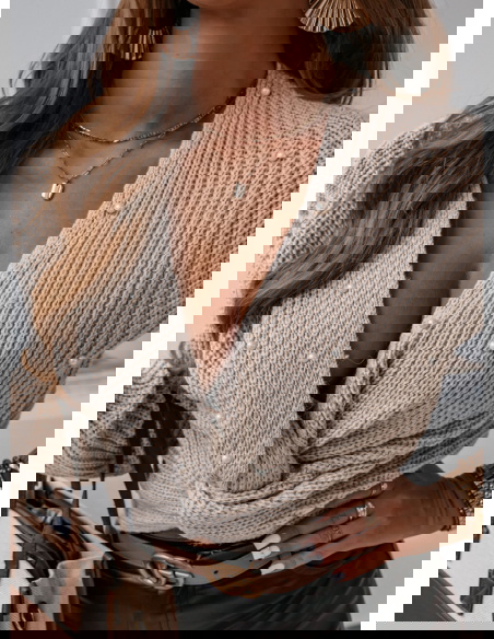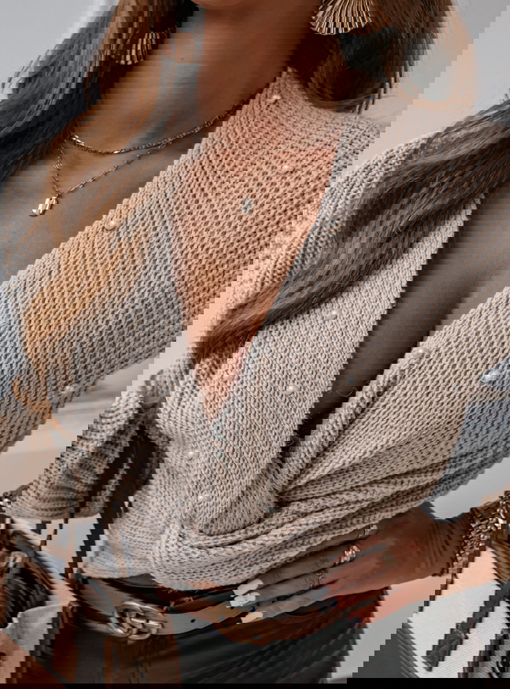 Modny sweterek pełen stylu specjalnie dla ciebie. Genialna opcja na udaną stylizacje, modny sweterek w jasnym odcieniu beżu z delikatnymi perełkami, które są genialna ozdobą.