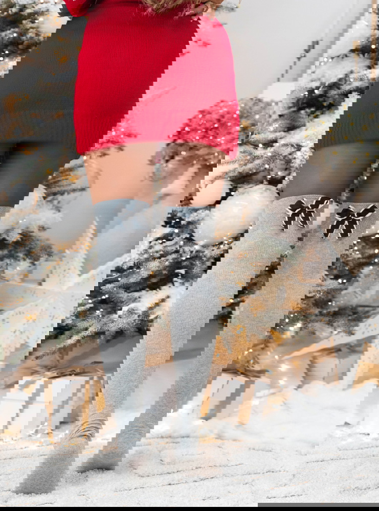 Szare zakolanówki z kokardką Daishaa to model który skradnie twoje serce i będzie słodkim dodatkiem na każdy dzień.
