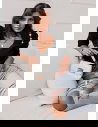 Modelka prezentuje produkty o rozmiarach S/M