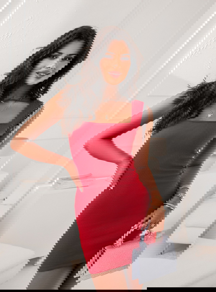 Malinowa prążkowana sukienka z kryształkami na ramionach Dominica to model który skradnie serce i będzie pasował na nadchodzący czas.