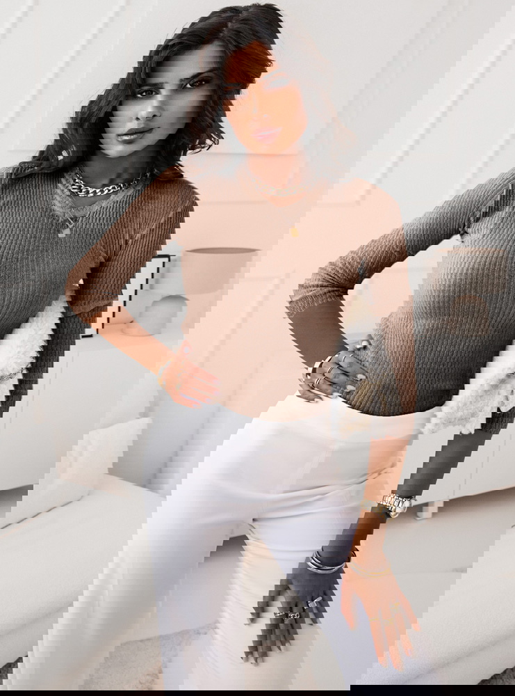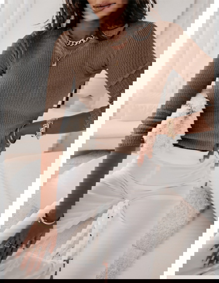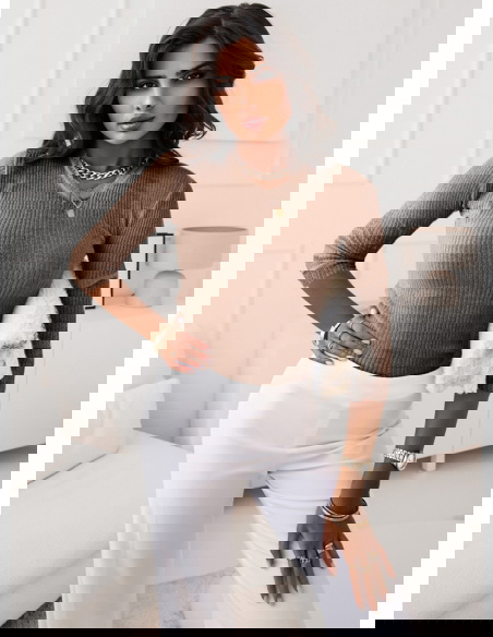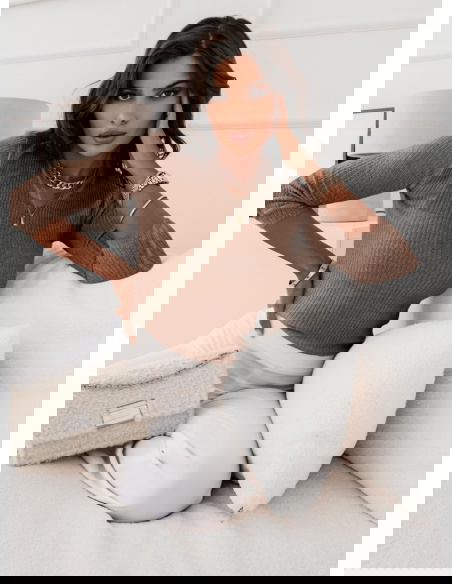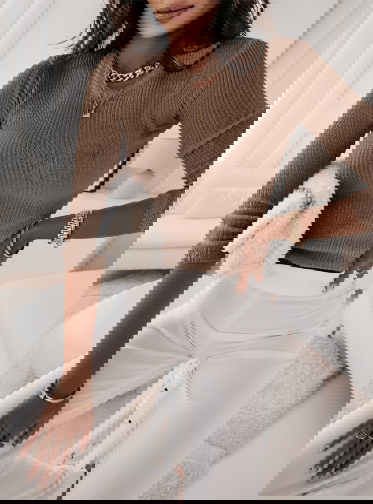 Sweterek z dekoltem w serek Reneliaa - odcienie brązu to propozycja której nie może zabraknąć w garderobie u każdej z Was.