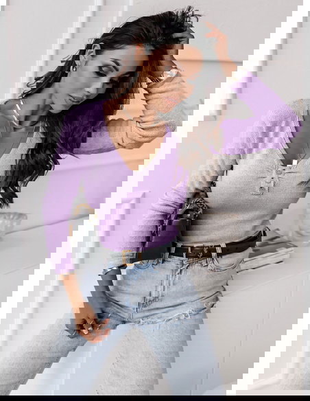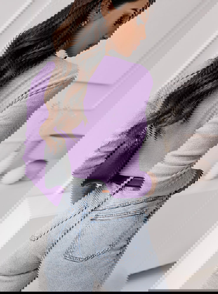Liliowy sweter z dekoltem i ozdobnymi guzikami Kelletta to wyjątkowy wybór na różne okazje jak i bez okazji.