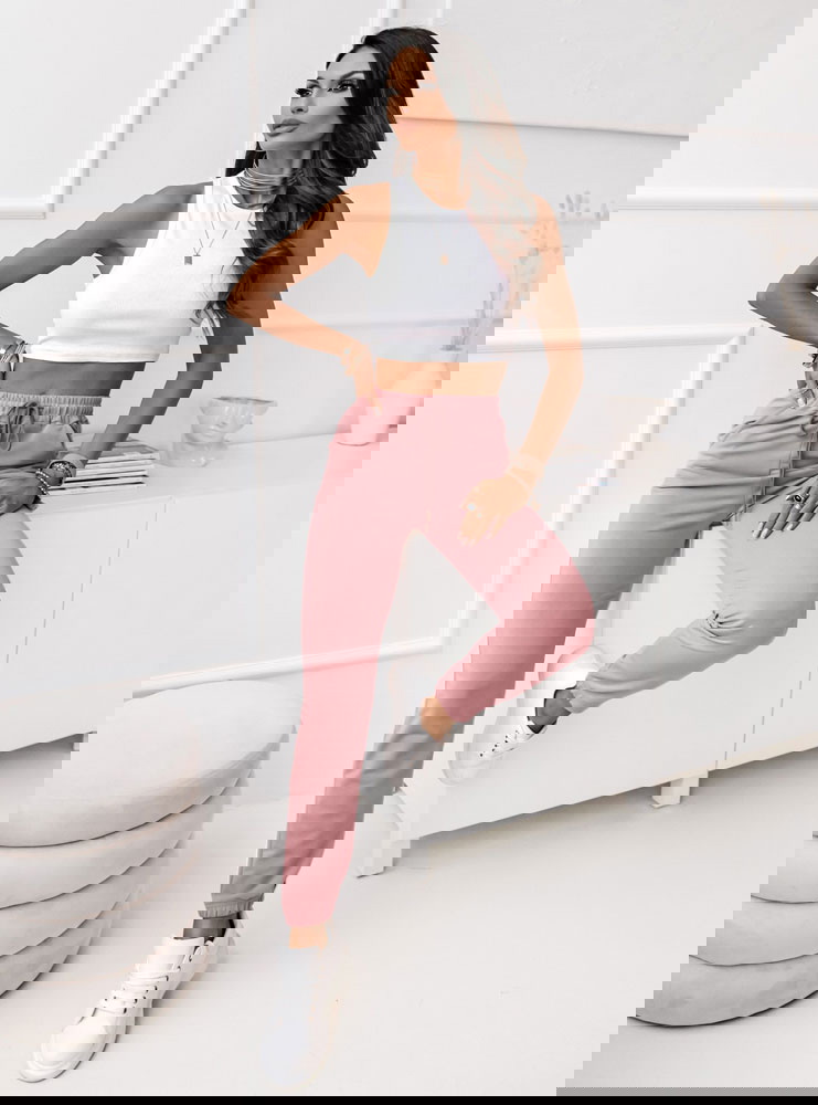 Pudrowe spodnie dresowe z ozdobnymi paskami po bokach Nacomi skradną  serce wszystkich kobiet które cenią wygodę każdego dnia.