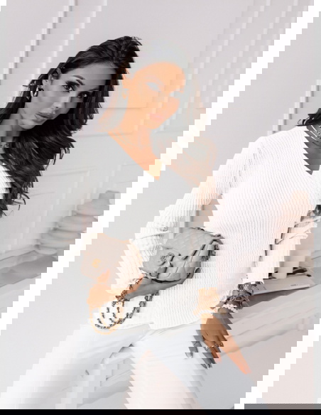 Sweterek z przekładanym dekoltem Dollee - ecru to zdecydowanie propozycja która musi być Twoja. Must have !
