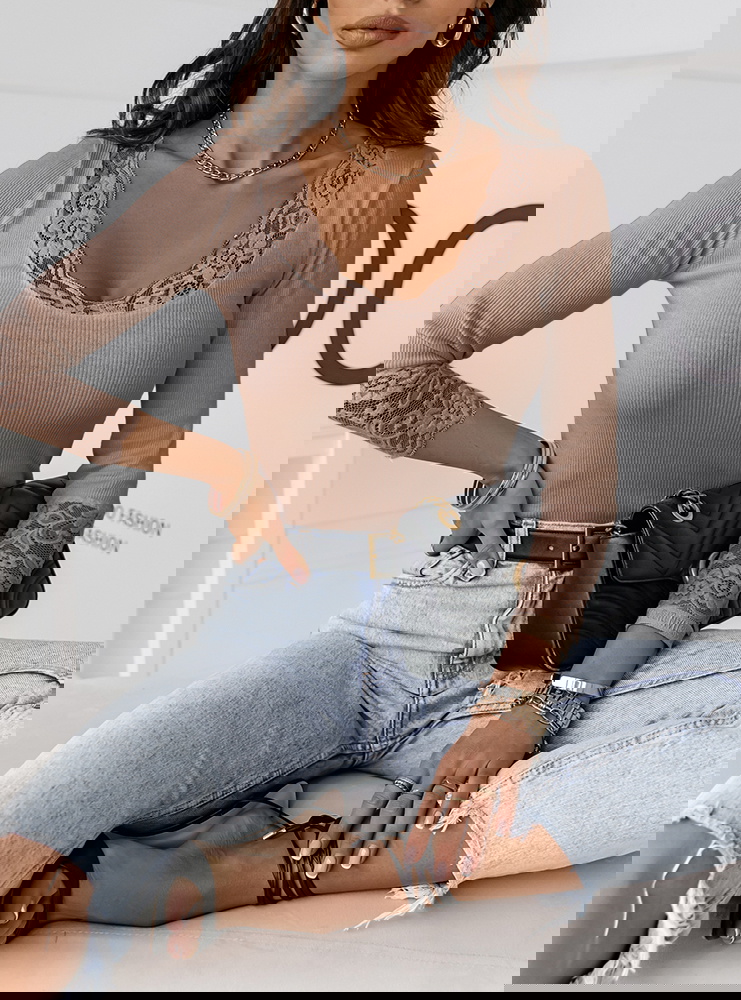 Beżowa prążkowana bluzka z koronką Terria to must have na każdy dzień. koniecznie musi być Twoja już dziś.