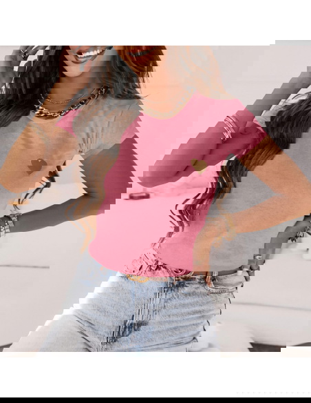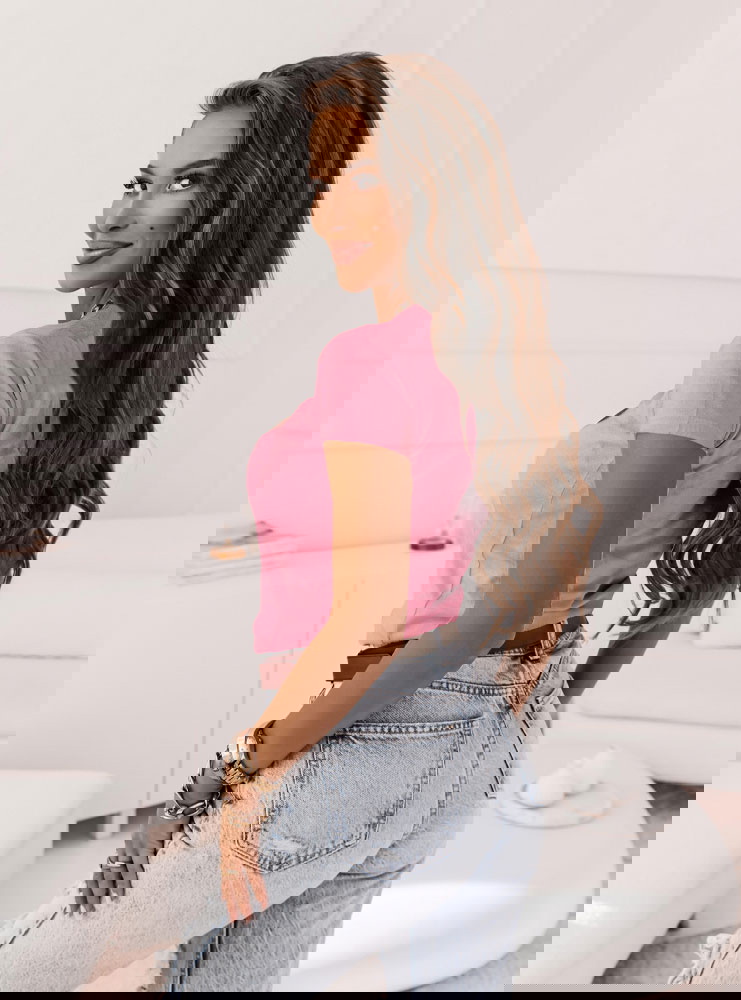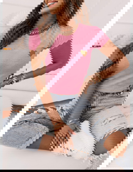 Różowa koszulka na krótki rękaw z ozdobnym nadrukiem Belisimoo