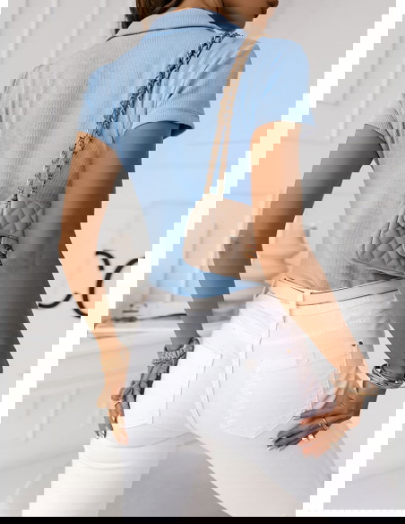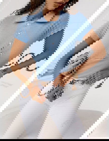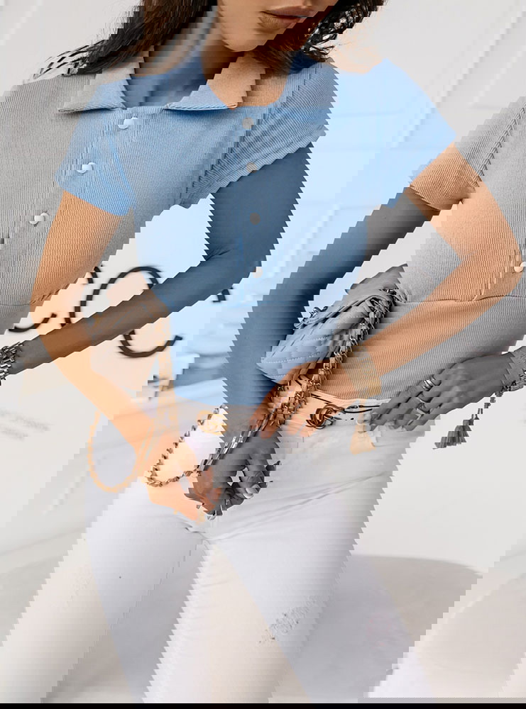 Błękitna bluzka prążkowana z guzikami Dorotte