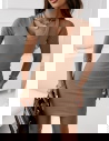 Czarna prążkowana sukienka z dekoltem Akibe to zdecydowanie dobry wybór który zagości u Ciebie. Wybierz swój kolor i już dziś przygotuj się na dzień kobiet .